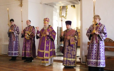 Богослужебные песнопения исполнил хор Свято-Троицкого собора-регент Татьяна Курмелёва.