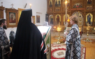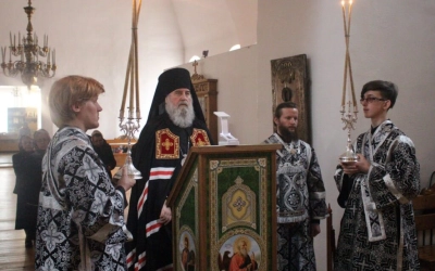 Богослужебные песнопения исполнил хор Свято-Троицкого собора-регент Елена Платонова.
