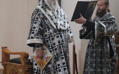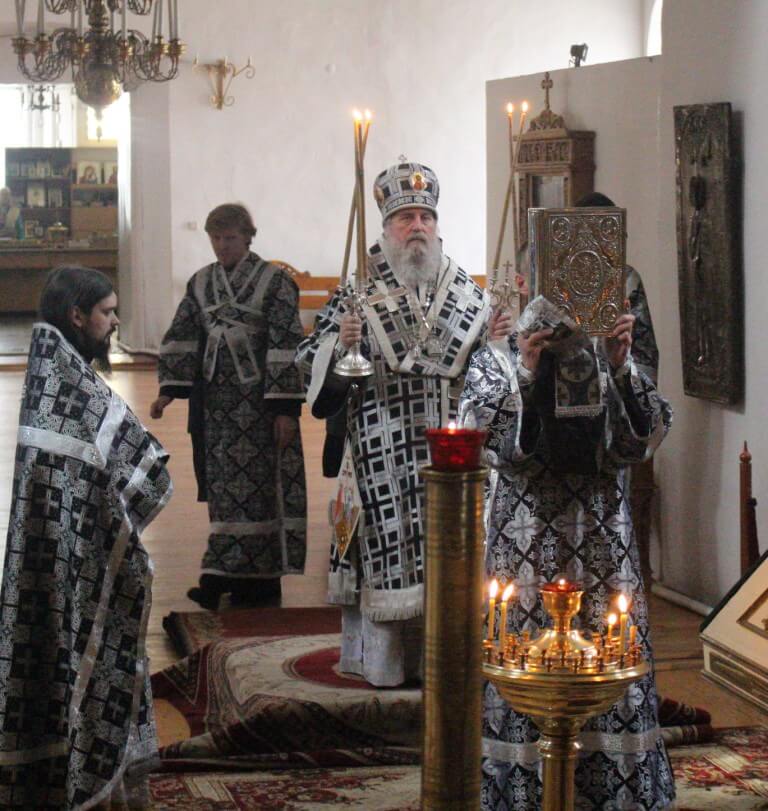 За великопостным богослужением Его Преосвященству сослужили: настоятель Свято-Троицкого собора иерей Александр Курмелёв, клирик Свято-Троицкого кафедрального собора города Вязьма иерей Владимир Покатов.