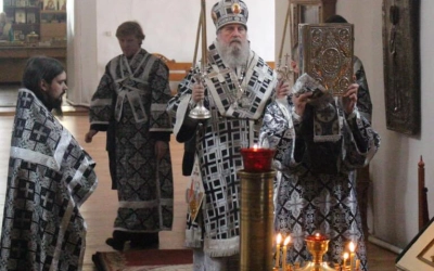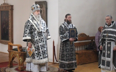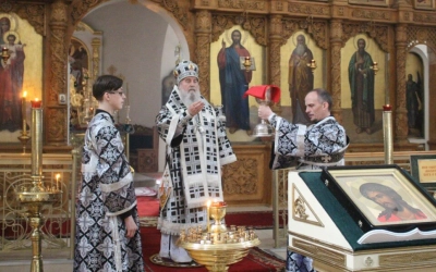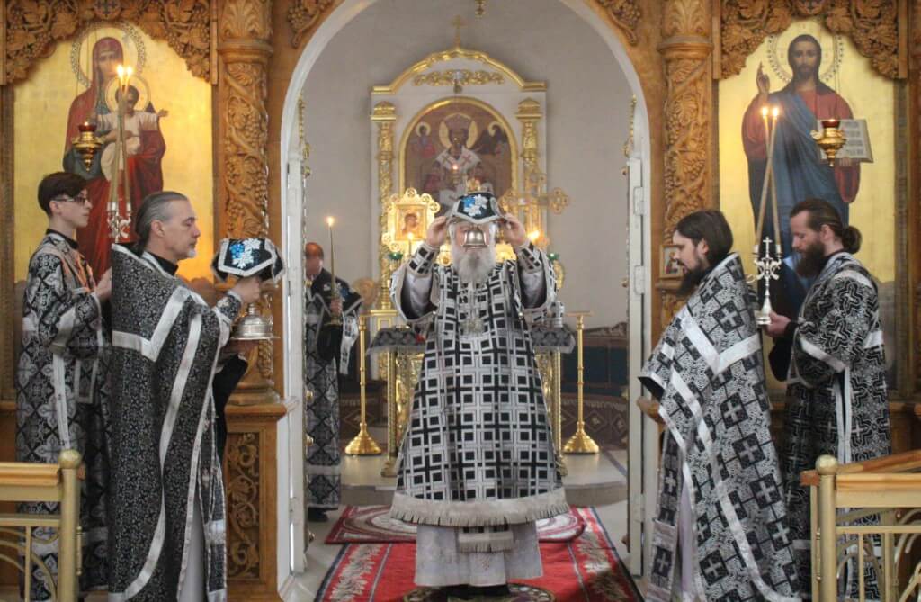 В завершение богослужения Епископ Сергий обратился к молящимся с архипастырским словом, поздравив духовенство и всех участников богослужения с Четвертком Великого канона пятой седмицы Великого поста, причастников — с принятием Святых Христовых Таин и преподал благословение.