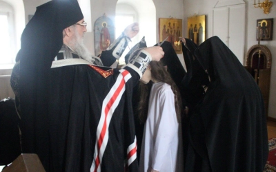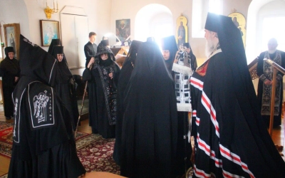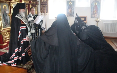 Чин монашеского пострига в малую схиму был совершён над насельницами Иоанно-Предтеченского женского монастыря-инокиней Надеждой и послушницей Людмилой.