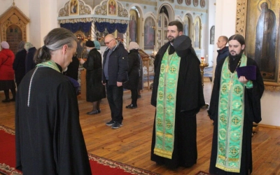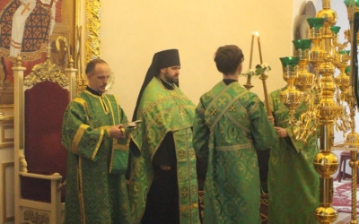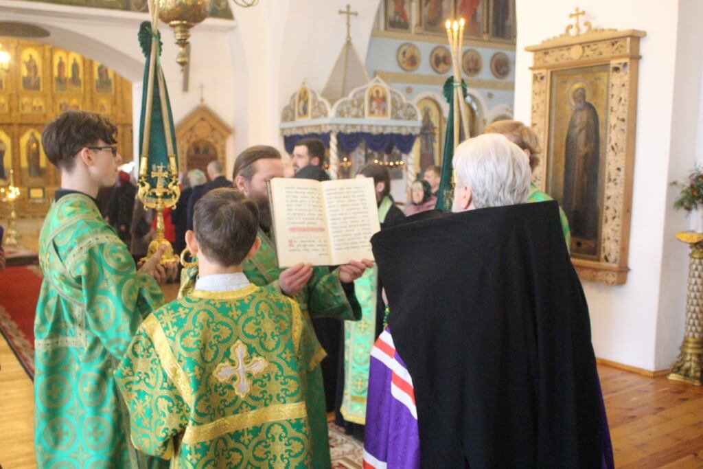 Богослужебные песнопения исполнил хор Свято-Троицкого собора-регент Елена Платонова.