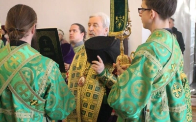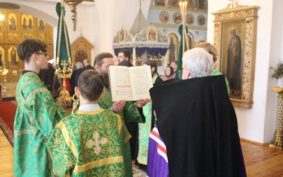 В завершении богослужения было совершено Величание по случаю двунадесятого праздника Входа Господня в Иерусалим.