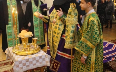 На вечерне, по случаю праздника, был совершен чин освящения хлебов.