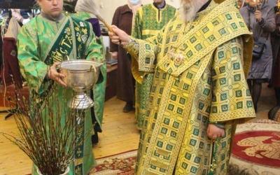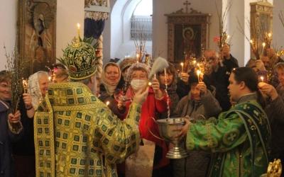 После чтения Евангелия, епископ Сергий совершил чин освящения верб.