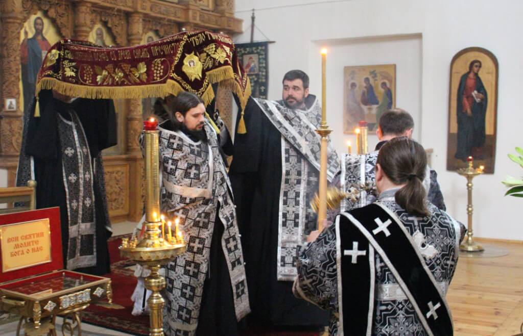 Затем было совершено малое повечерие, на котором был прочитан канон «О распятии Господа и на плач Пресвятой Богородицы».