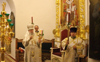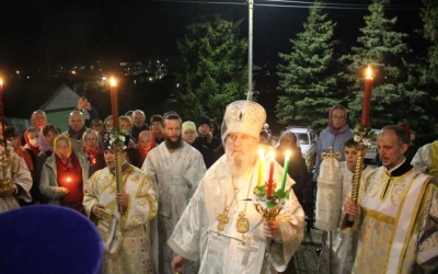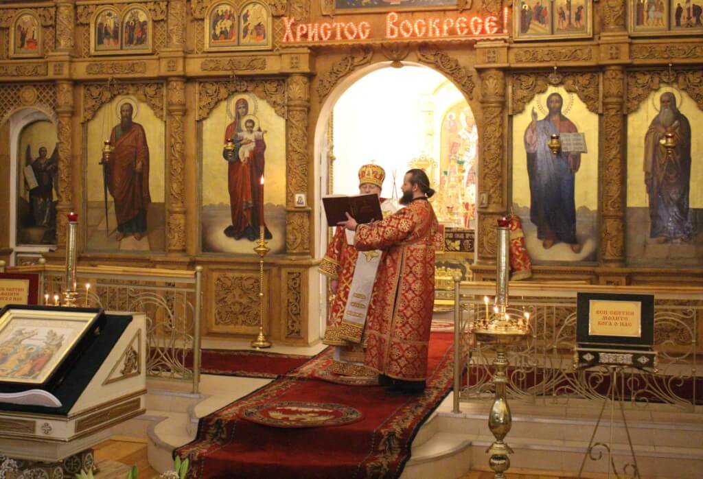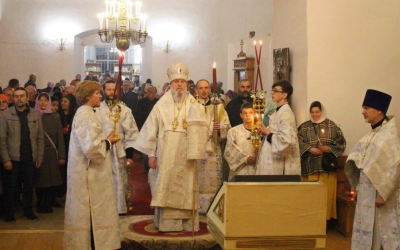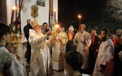 За Пасхальной заутреней Преосвященный епископ Сергий прочитал Огласительное слово святителя Иоанна Златоуста на Святую Пасху.