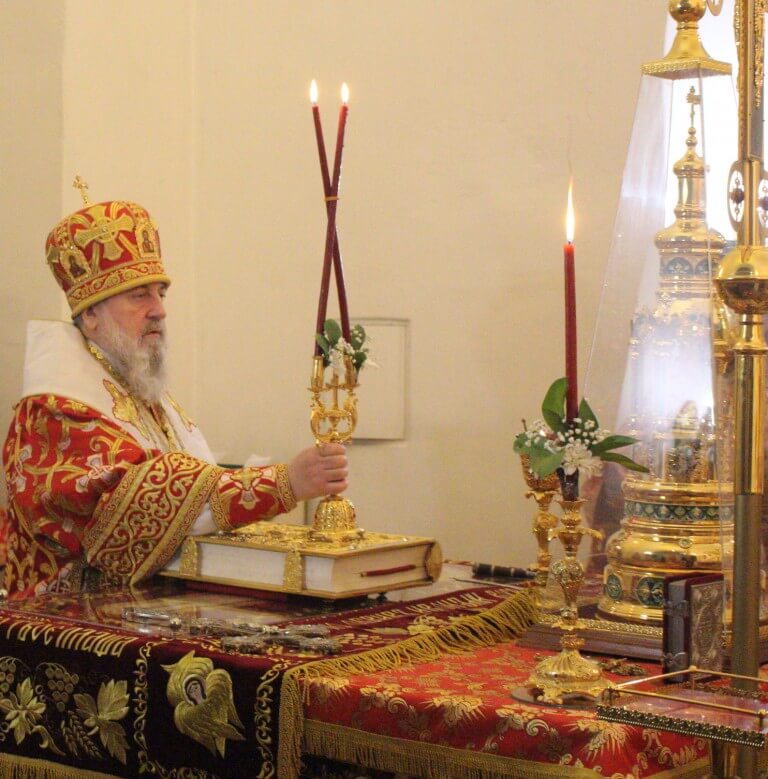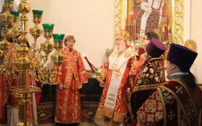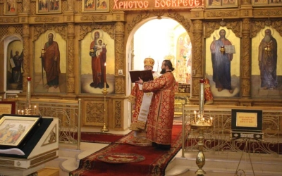 По запричастном стихе настоятель кафедрального храма иерей Александр Курмелёв огласил Пасхальное послание Святейшего Патриарха Кирилла архипастырям, пастырям, монашествующим и всем верным чадам Русской Православной Церкви.