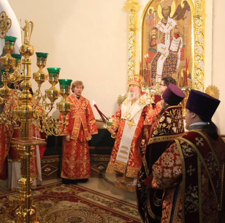 В завершении богослужения епископ Сергий обратился к присутствующим в храме с Архипастырским словом, поздравив духовенство и прихожан с праздником Светлого Христова Воскресения.
