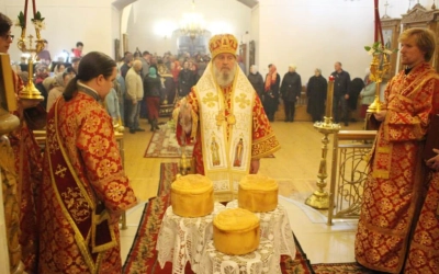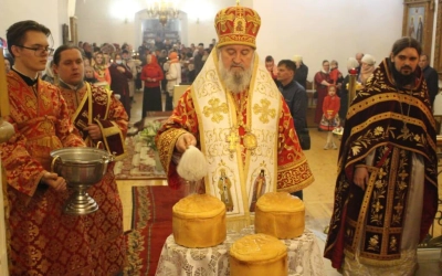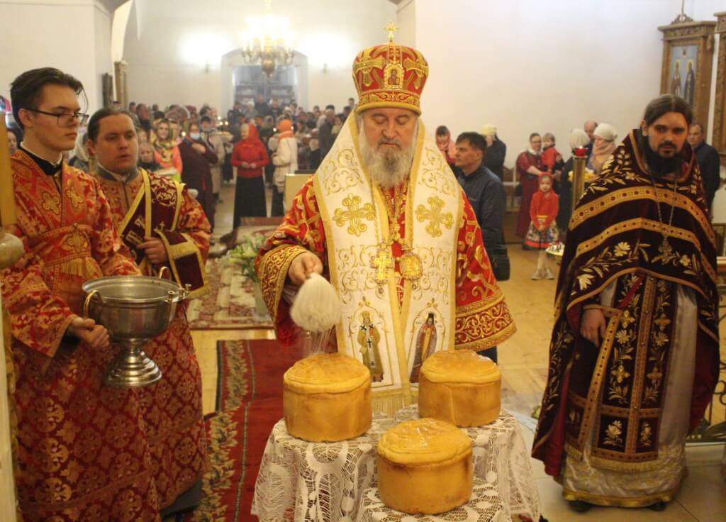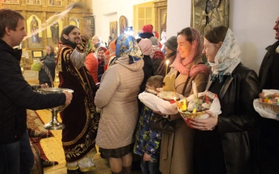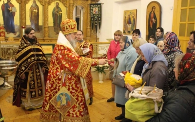 По завершении своего обращения Архипастырь призвал на всех Божие благословение и совершил освящение пасхальных куличей и яиц.