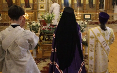 Богослужебные песнопения исполнил хор Свято-Троицкого кафедрального собора-регент Елена Платонова.