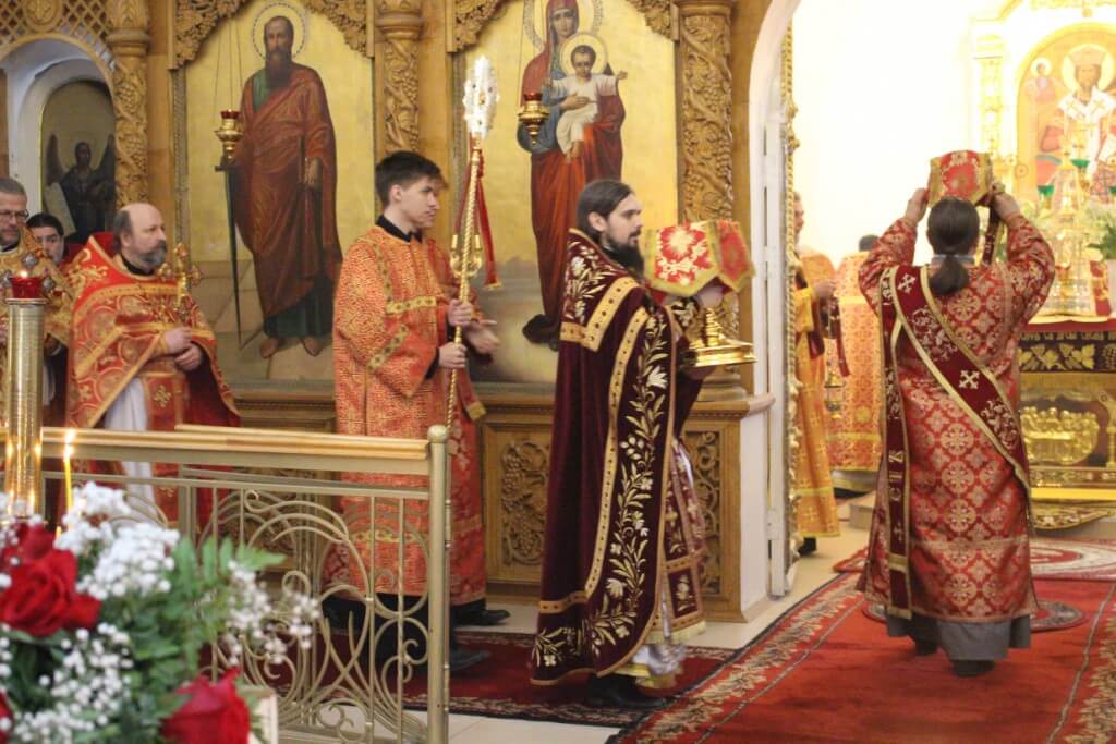 В завершении праздничного богослужения епископ Сергий обратился к присутствующим в храме с Архипастырским словом, поздравив духовенство и прихожан с праздником Светлого Христова Воскресения и днём почитания Иверской иконы Божией Матери.