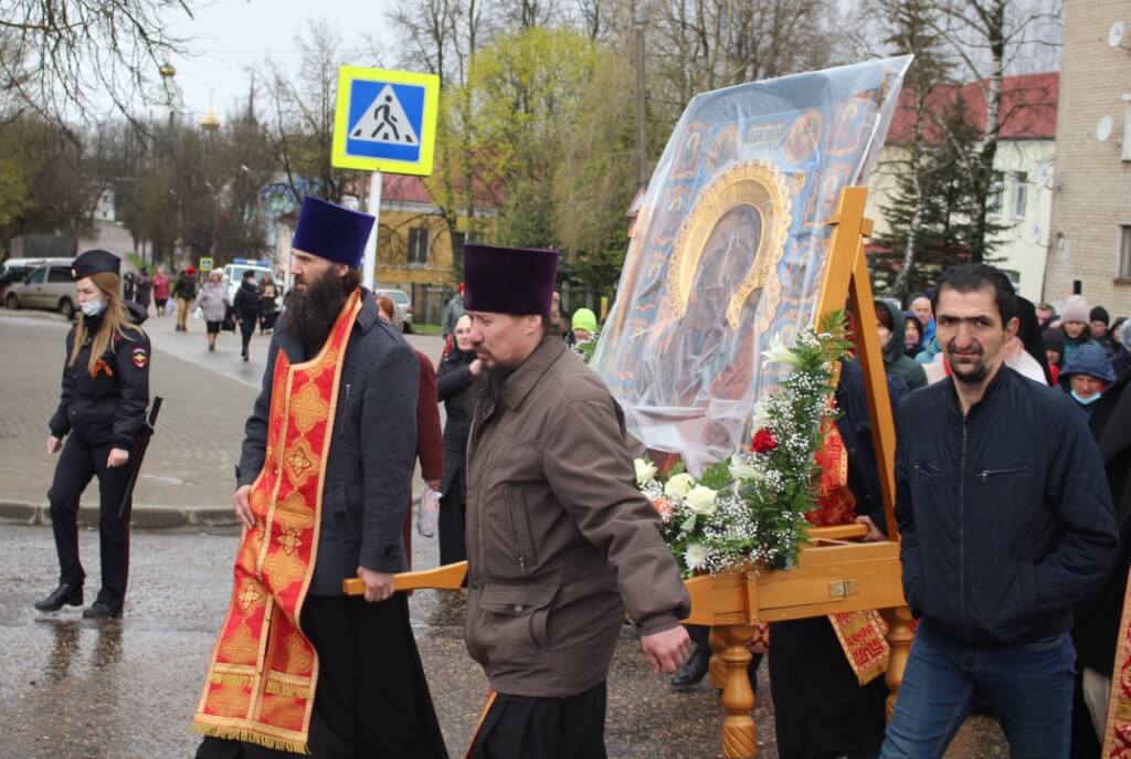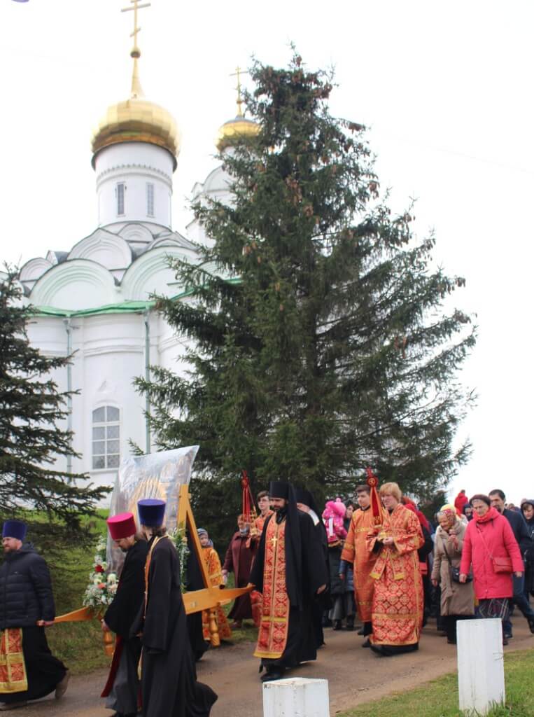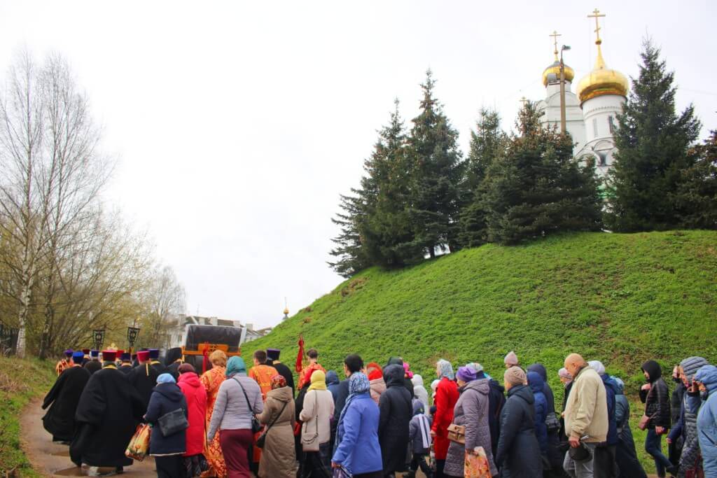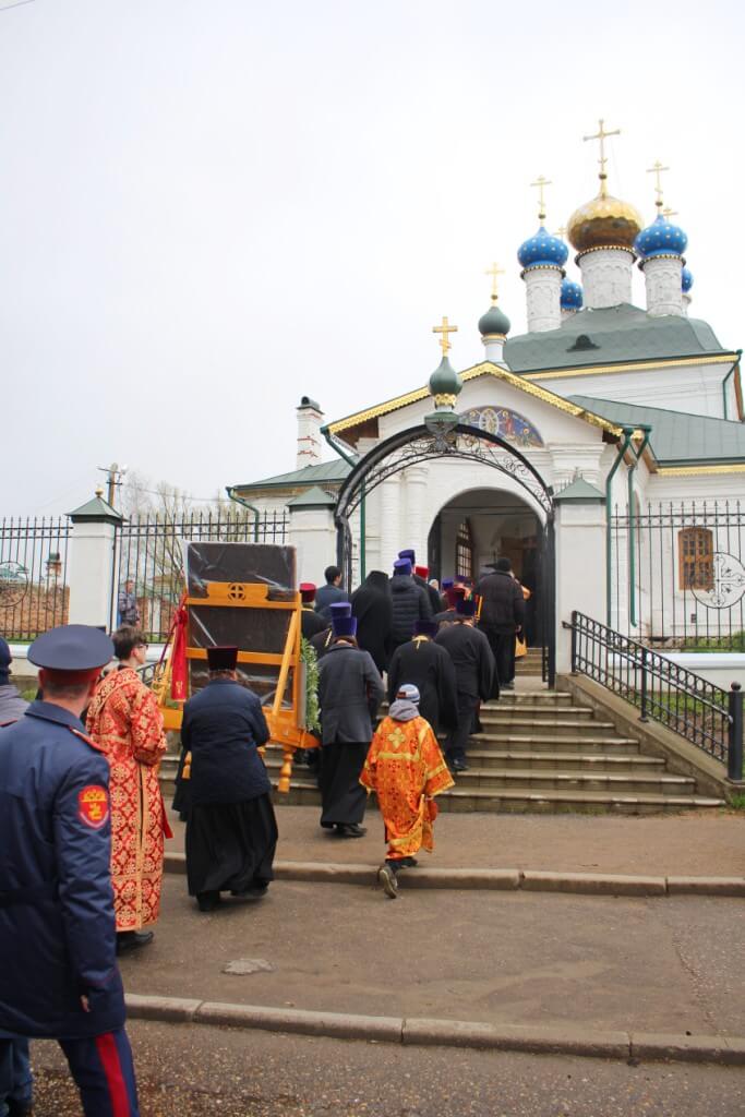 По завершении праздничного богослужения был совершён Крестный ход с Чудотворной иконой Божией Матери "Иверская" от Свято-Троицкого кафедрального собора до храма Преображения Господня.