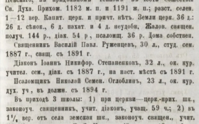Церковь деревянная, престолы освящены: главный - св. благ. князя Александра Невского, придельный - Святого Духа.