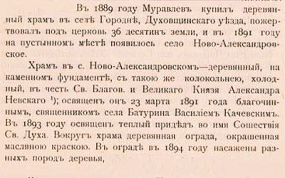 Церковь разрушена - 1940 -х гг. Село Ново-Александровское - в настоящее время относится к категории не жилых населённых пунктов - ( Холм- Жирковского района, Смоленской области).