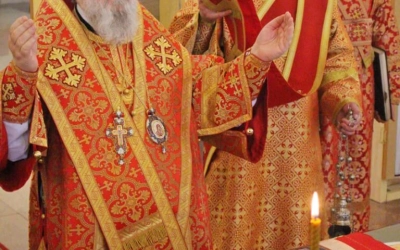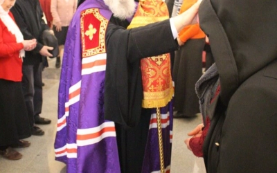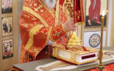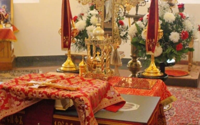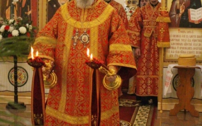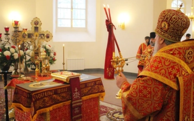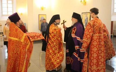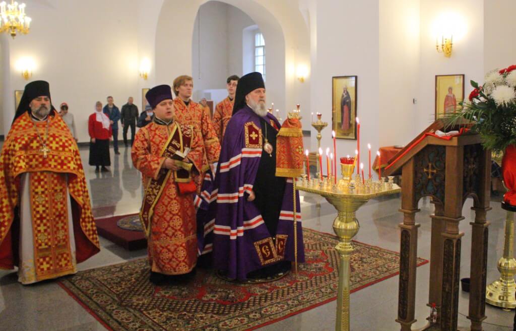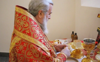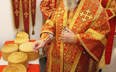По отпусте Божественной литургии Епископ Сергий вознес молитву на раздробление артоса.