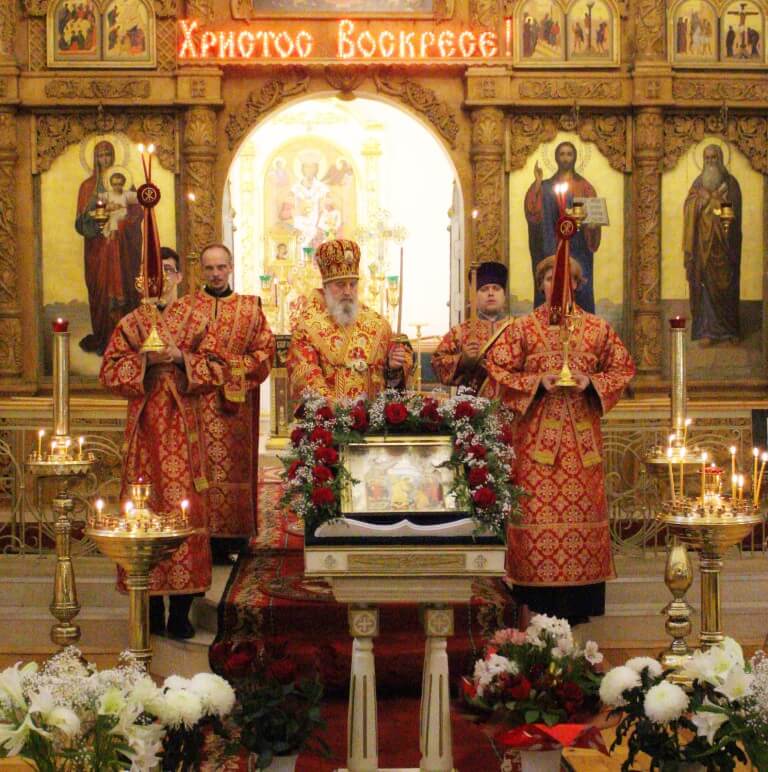 На полиелее было пропето величание Антипасхи: «Величаем Тя, Живодавче Христе, нас ради во ад сшедшаго и с Собою вся воскресившаго».