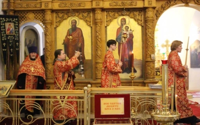 Богослужебные песнопения исполнил хор Свято-Троицкого кафедрального собора-регент Елена Платонова.