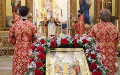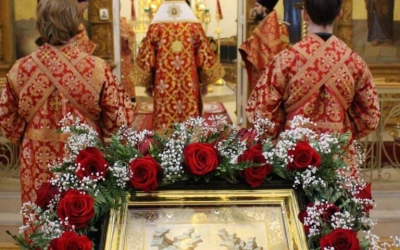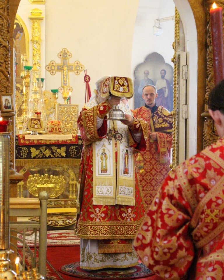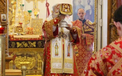 По заамвонной молитве был совершён Крестный ход вокруг храма.