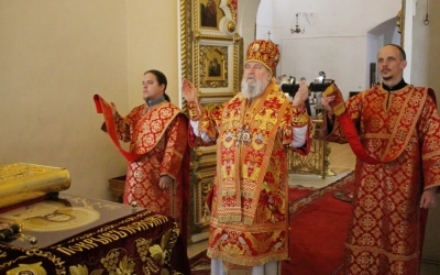 По завершении богослужения Епископ Сергий обратился к присутствующим с Архипастырским словом на тему дня Пасхального поминовения усопших (Радоницы).
