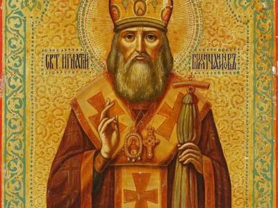Святитель Игнатий (в миру Дмитрий Александрович Брянчанинов; + 1867 г.) – епископ Кавказский и Черноморский. Он родился в 1807 году в селе Покровском Вологодской губернии. В 16 лет родители оправили его в Санкт-Петербургское Главное военно-инженерное училище, которое он окончил в 1826 году в чине поручика. В 1827 году, оставив военную службу, Дмитрий Александрович поступил в Александро-Свирский монастырь. В 1831 году его постригли в монашество, рукоположили в сан иеродиакона и иеромонаха. В конце того же года отца Игнатия назначили настоятелем Пельшемского Лопотова монастыря, с возведением в сан игумена. В 1834-1856 гг. он был настоятелем Троице-Сергиевой пустыни под Санкт-Петербургом, в сане архимандрита. В 1857 году его хиротонисали во епископа Кавказского и Черноморского (с кафедрой в г. Ставрополе). В 1861 году, по его прошению, он уволен на покой и поселился в Николо-Бабаевском монастыре Костромской епархии, где и скончался в 1867 году. Преосвященный Игнатий написал книги духовного содержания: «Приношение современному монашеству» и «Отечник». В 1988 году его причислили к лику святых Русской Церкви. Память – 30 апреля / 13 мая; в Соборах Костромских, Санкт-Петербургских и Ростовских святых.