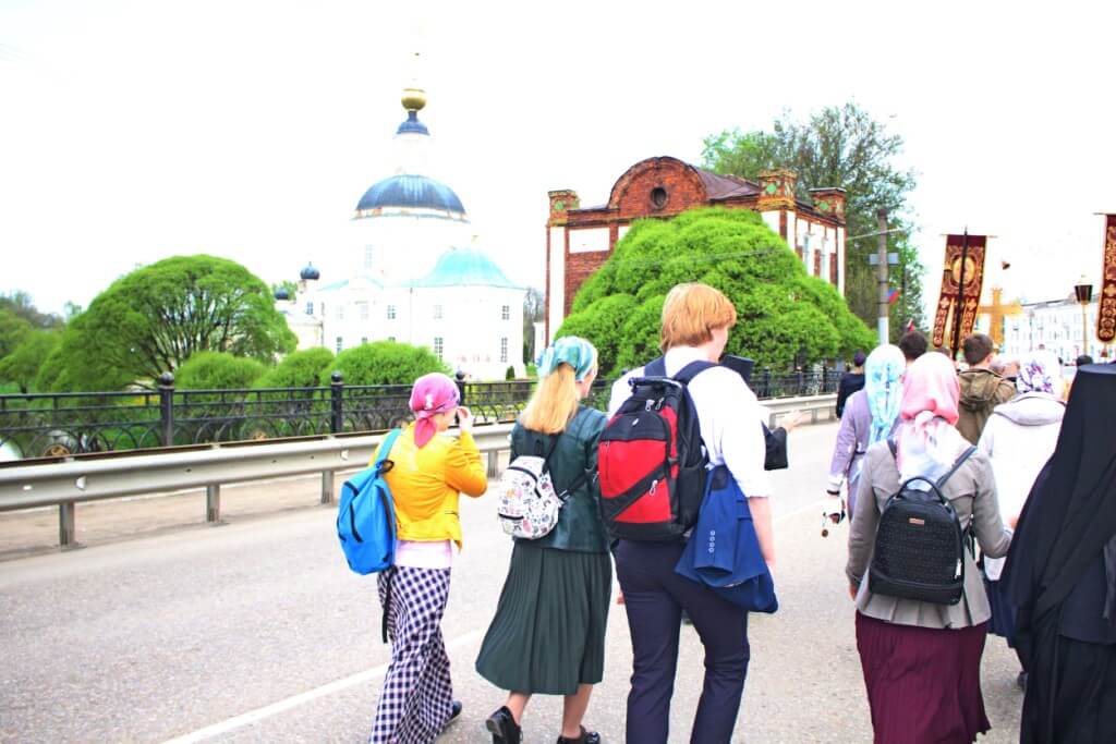 В продолжении праздничного дня был совершён Крестный ход с Чудотворным списком иконы Божией Матери «Иверская» вокруг древнего Одигитриевского храма, а затем Крестный ход направился к Свято-Троицкому кафедральному собору.