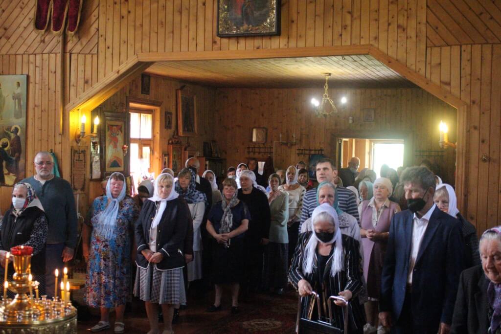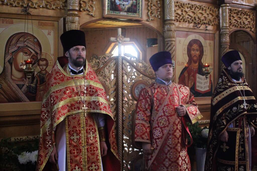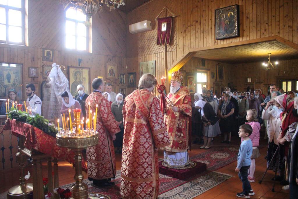 По заамвонной молитве духовенство и прихожане во главе с Епископом Сергием совершили Крестный ход вокруг храма по случаю Престольного праздника.