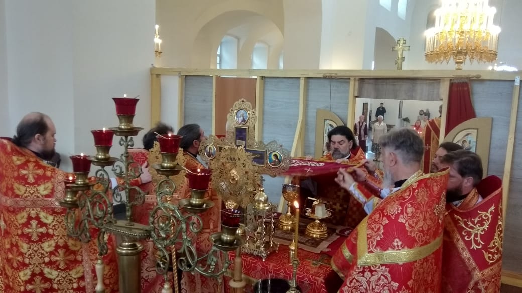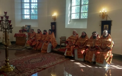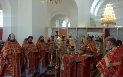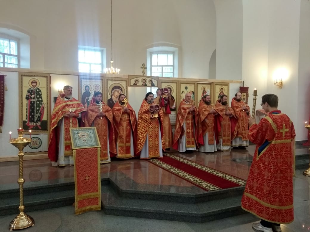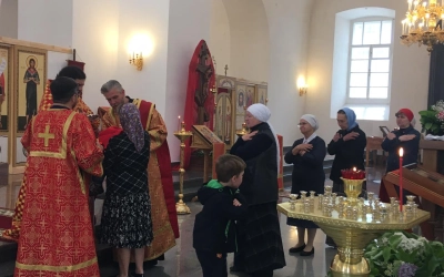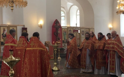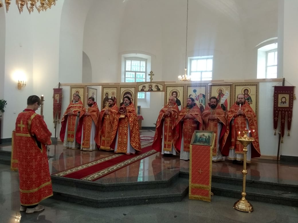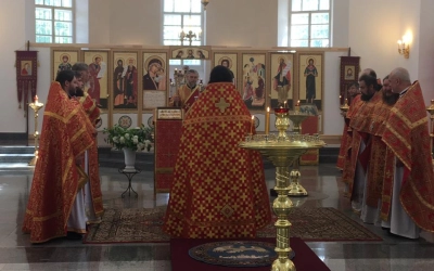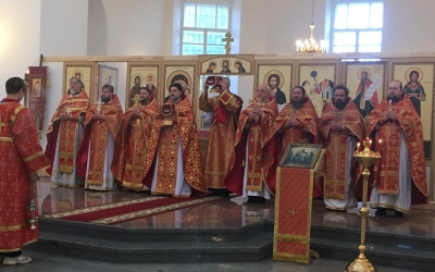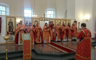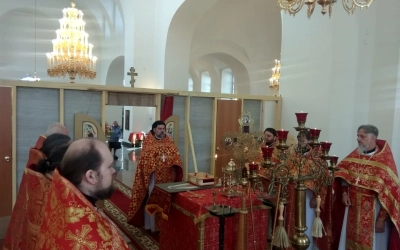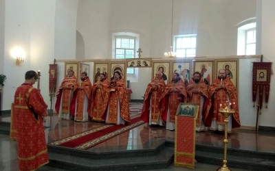 На Богослужении были возглашены благодарственные прошения о здравии Святейшего Патриарха Московского и всея Руси Кирилла, празднующего день своего тезоименитства и многолетие Святейшему Владыке с богоспасаемой паствой.