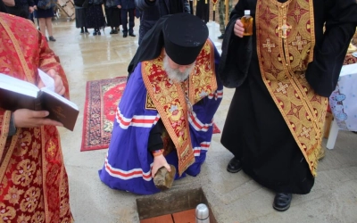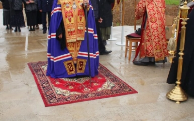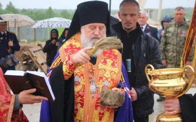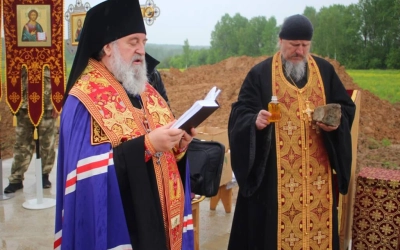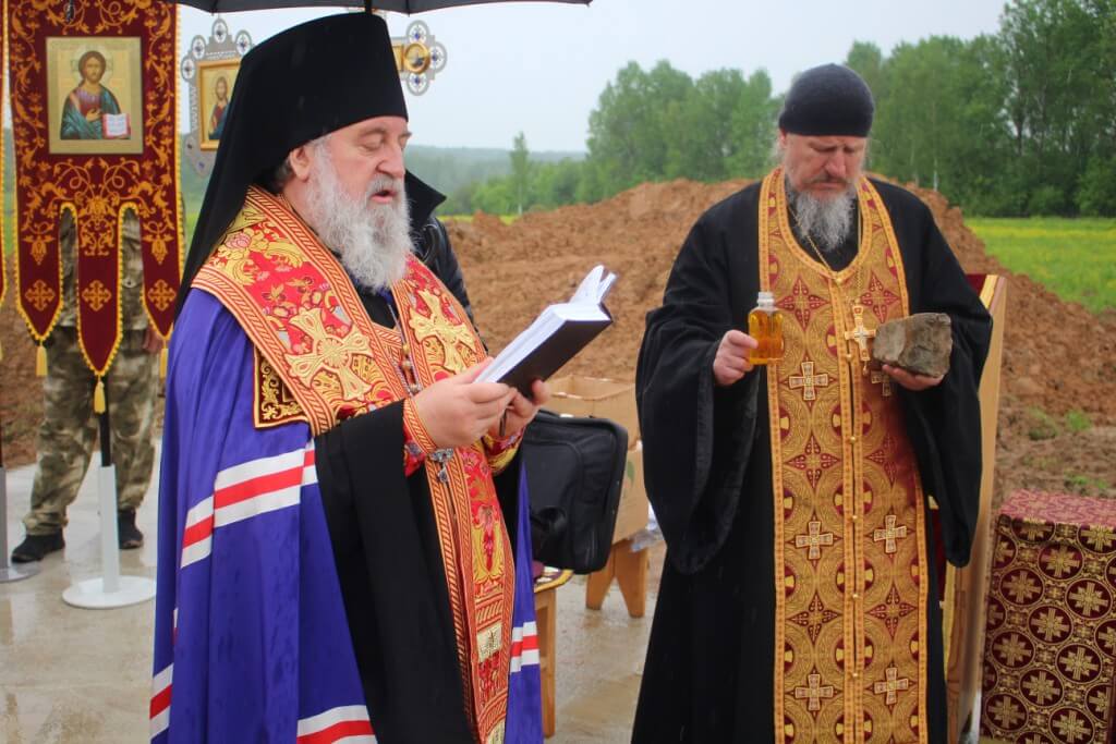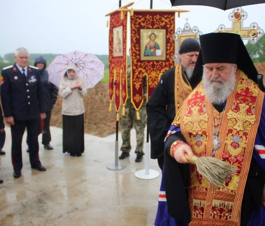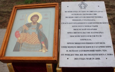29 мая 2021 года, в субботу 4-й седмицы по Пасхе, в день памяти прп. Феодора Освященного, Преосвященнейший Сергий, епископ Вяземский и Гагаринский, на территории Спасо-Богородицкого Одигитриевского женского монастыря совершил чин на основание храма во имя Вмч. Феодора Стратилата.