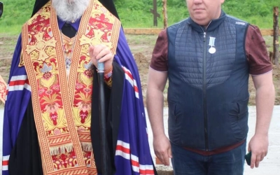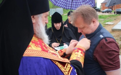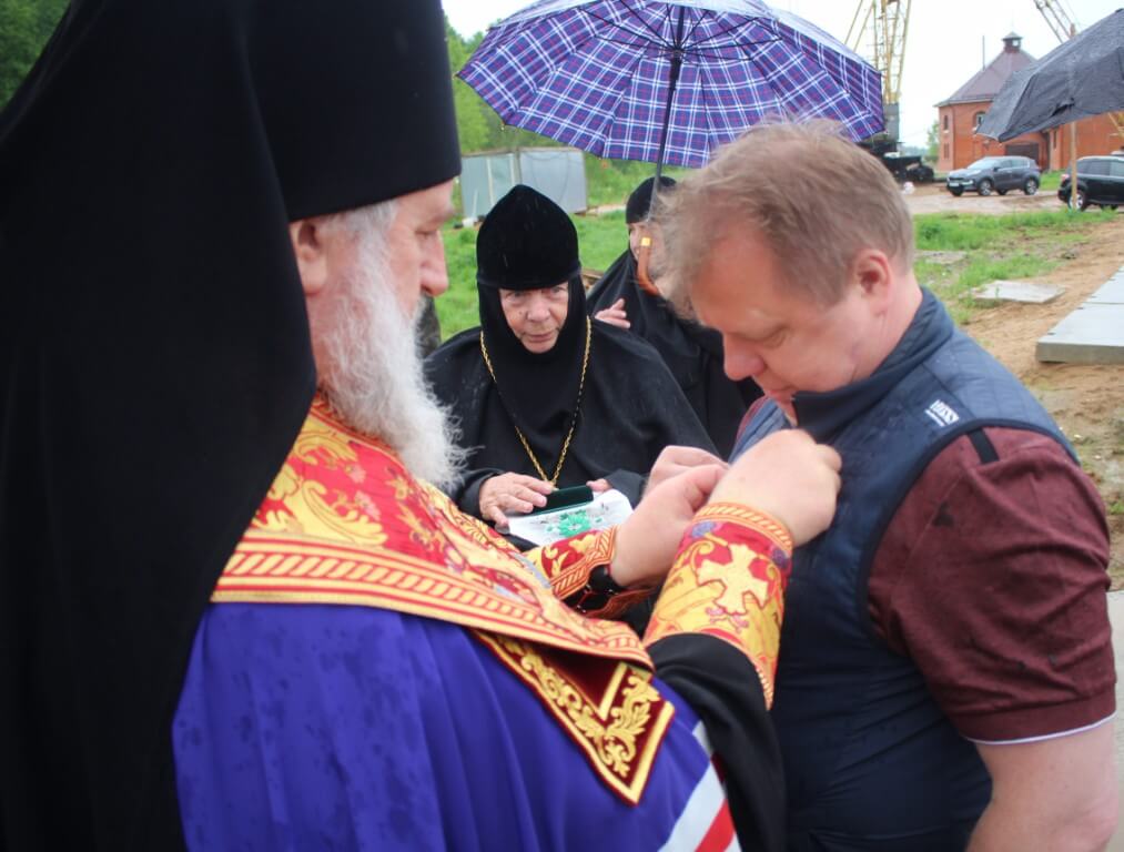 В продолжении своего слова Епископ Сергий наградил епархиальной медалью прп. Аркадия Вяземского второй степени-Игоря Алексеевича Сазонова, многолетнего благотворителя Спасо-Богородицкого Одигитриевского монастыря.