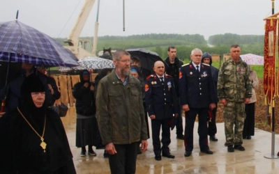 настоятельница обители, игумения Ангелина (Нестерова); старший священник монастыря иеромонах Даниил (Сычёв); Игорь Алексеевич Сазонов-генеральный директор Фонда создания Духовно-мемориального комплекса почитания памяти воинов имени Св. Вмч. Феодора Стратилата; Сергей Юрьевич Винокуров-генеральный директор ООО "Вязьмастройсервис"; паломники из Москвы, Подмосковья, Смоленска, казаки станицы "Вяземская".