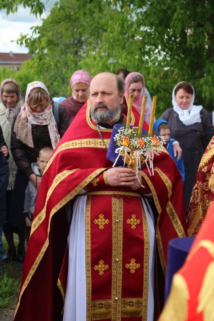 По заамвонной молитве духовенство и прихожане во главе с Епископом Сергием совершили Крестный ход вокруг храма.