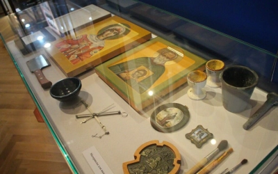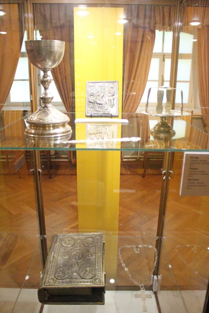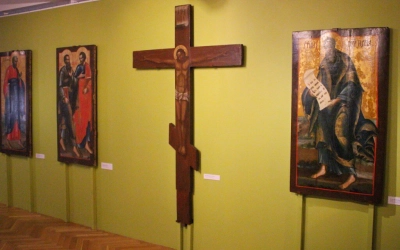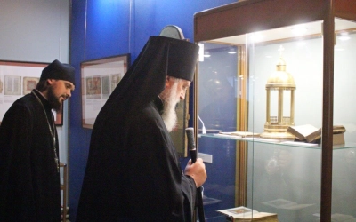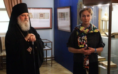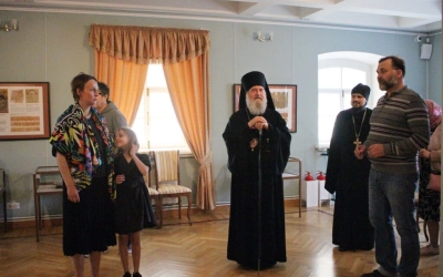 После литии Владыка Сергий совместно с Надеждой Викторовной Кулаковой открыли выставку в большом выставочном зале Хмелиты. Эта выставка-первый совместный духовно-просветительский проект, который подготовлен совместными усилиями Вяземской епархии и Музеем-заповедником А.С. Грибоедова «Хмелита» в рамках соглашения о партнерстве, подписанного 18 ноября 2020 года епископом Вяземским и Гагаринским Сергием и директором музея-заповедника Надеждой Кулаковой. На выставке были представлены произведения православного искусства из фондов музея-заповедника, а также из собраний священнослужителей Вяземской епархии. Это иконы, богослужебные книги, церковное облачение и богослужебные предметы. Наибольшую духовную и культурную ценность представляют иконы XVIII века: Божией Матери, Иисуса Вседержителя, Святого Апостола Марка; Пророков Исайи, Иеремии и Илии, Святых Апостолов Варфоломея и Иакова, Святителя Николая Мирликийского.