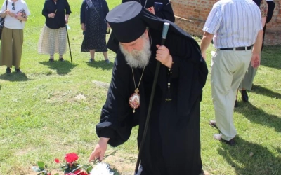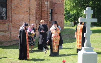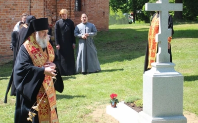 Епископ Сергий совершил заупокойную литию на могиле почившего. Владыке Сергию сослужили: благочинный Угранского округа иерей Александр Курмелёв, настоятель расположенного на территории родовой усадьбы Грибоедовых храма Казанской иконы Божией Матери иерей Андрей Константинов. За богослужением молились: директор государственного историко-культурного и природного музея-заповедника А.С. Грибоедова «Хмелита» Надежда Викторовна Кулакова, главный художник музея Несмелов Дмитрий Владимирович, представители высших культурных кругов России, друзья, родные и близкие Виктора Евгеньевича Кулакова.