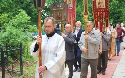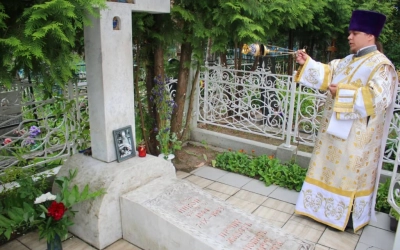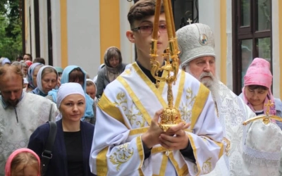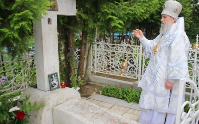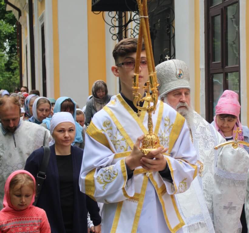 По завершении Божественной литургии был совершён Крестный ход вокруг храма, во время которого была совершена заупокойная лития о упокоении игумена Никона (Воробьёва) и почивших клириков Вознесенского храма.