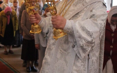 По отпусте Божественной литургии епископ Сергий обратился к прихожанам с Архипастырским словом по случаю праздника Вонесения Господня.