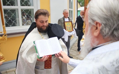 Отец Тимофей поздравил Епископа Сергия с Престольным праздником.