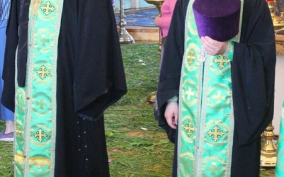 У иконы Святой Троицы духовенство пропело величание: «Величаем Тя, Живодавче Христе, и чтем Всесвятаго Духа Твоего, Егоже от Отца, послал еси божественным учеником Твоим.» После чтения Евангелия Правящий архиерей совершил помазание духовенства и народа освященным елеем.