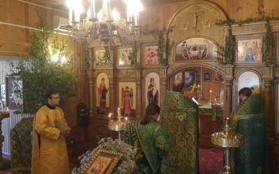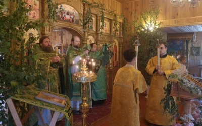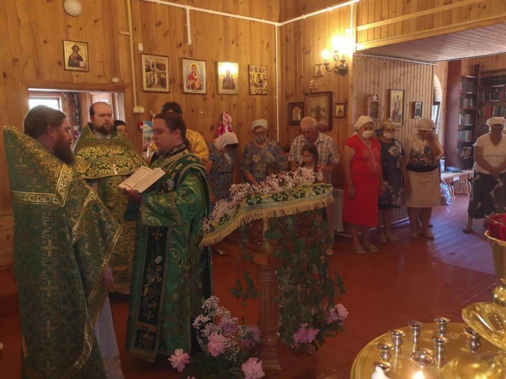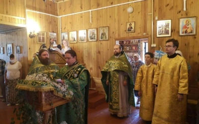 Праздничную Литургию в храме совершил настоятель храма иеромонах Андрей (Дергачёв-Белошецкий) в сослужении иерея Алексия Лупехина настоятеля церкви святого праведного Иоанна Кронштадского поселка Верхнеднепровский Дорогобужского района Смоленской епархии.