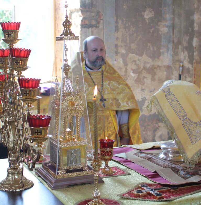 Секретарь епархиального управления Вяземской епархии протоиерей Олег Переверзев, настоятель храма Апостолов Петра и Павла города Вязьма иерей Димитрий Тимофеев.
