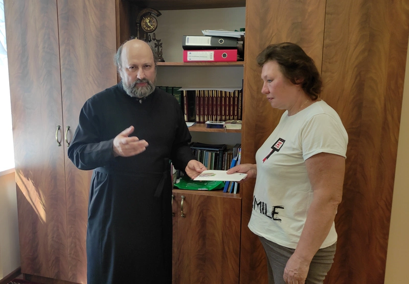 Секретарь Епархиального управления Вяземской епархии протоиерей Олег Переверзев передал деньги в размере 66000 рублей лично Людмиле Павловне, которая в свою очередь сердечно поблагодарила всех, кто остался неравнодушным к положению их семьи и оказал посильную помощь.