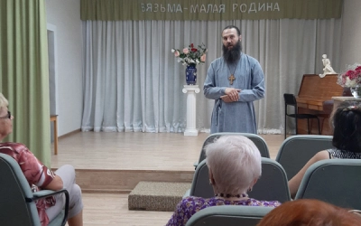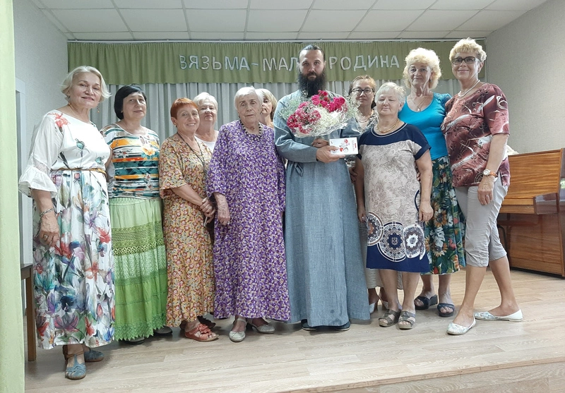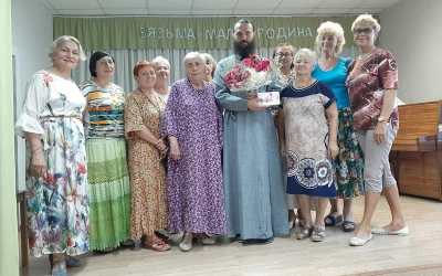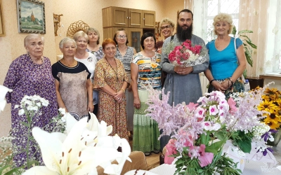 Этому приподнятому состоянию способствовала встреча с настоятелем храма святых первоверховных апостолов Петра и Павла, иереем Дмитрием Тимофеевым. Отец Дмитрий построил беседу «Традиции русской духовности» с участницами клуба соответственно названию клуба. Задушевный разговор, наполненный философией жизни и переходящий порой в дискуссию, охватывал темы красоты, здоровья и отдыха. Слушательницы услышали ответы на многие волнующие их вопросы. И в подарок настоятелю в честь недавнего престольного праздника храма, им возглавляемого - Дня святых апостолов Петра и Павла, преподнесли цветы и стихи.