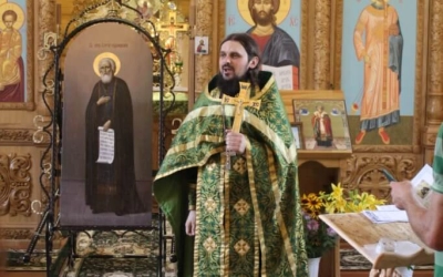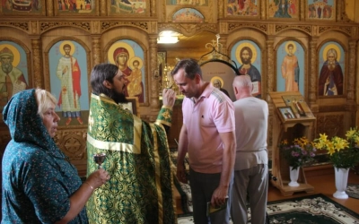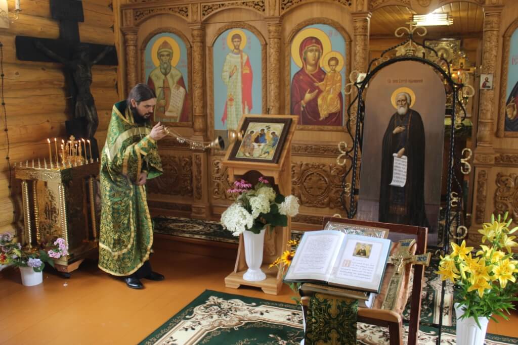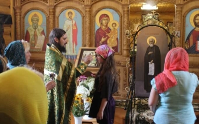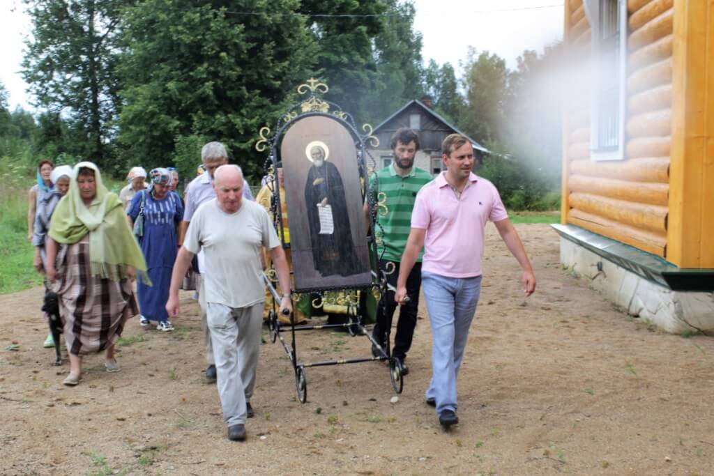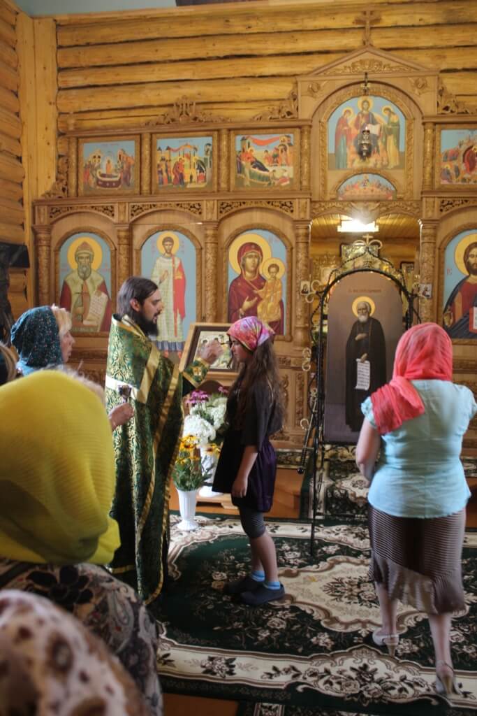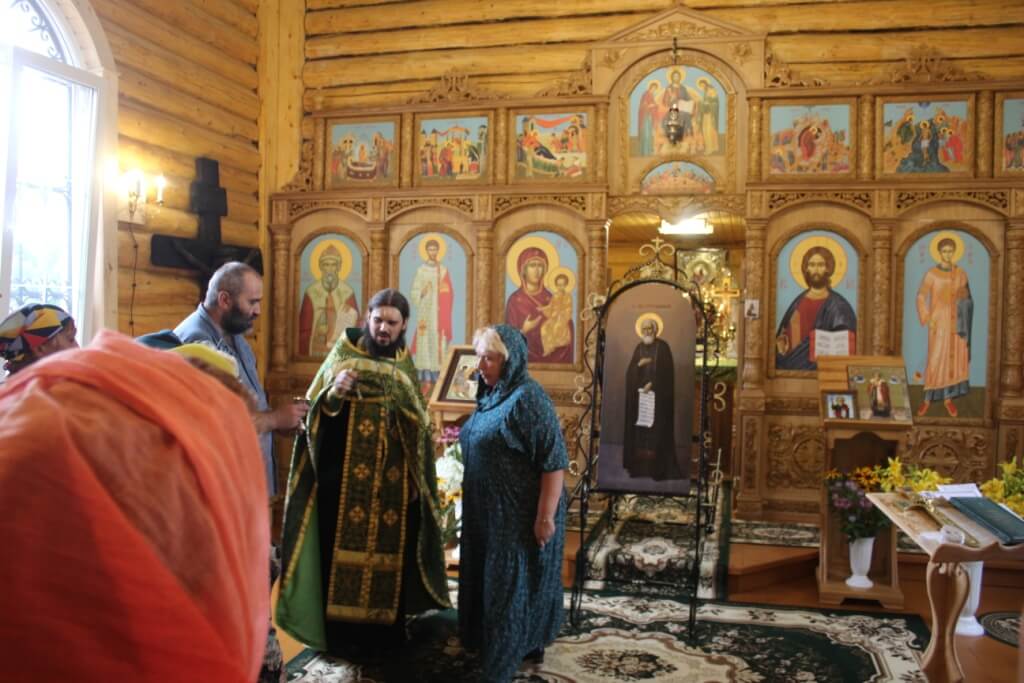 Во время праздничной службы состоялся крестный ход, с иконой Преподобного Сергия Радонежского, вокруг храма, где отец Александр щедро окропил всех собравшихся святой водой.