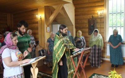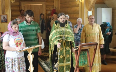 Несмотря на ливень, который начался перед самым Богослужением, и которого после долгой засухи так ждали местные жители, народ спешил в храм.