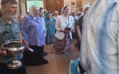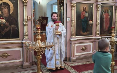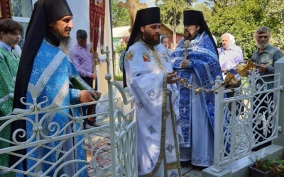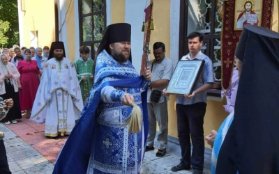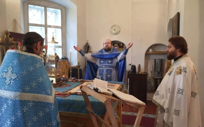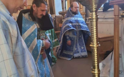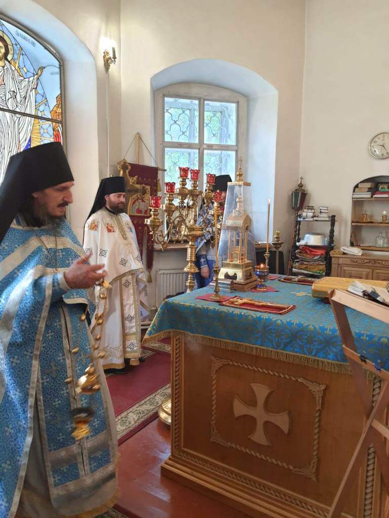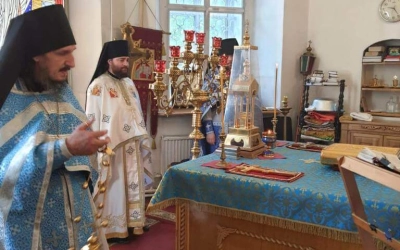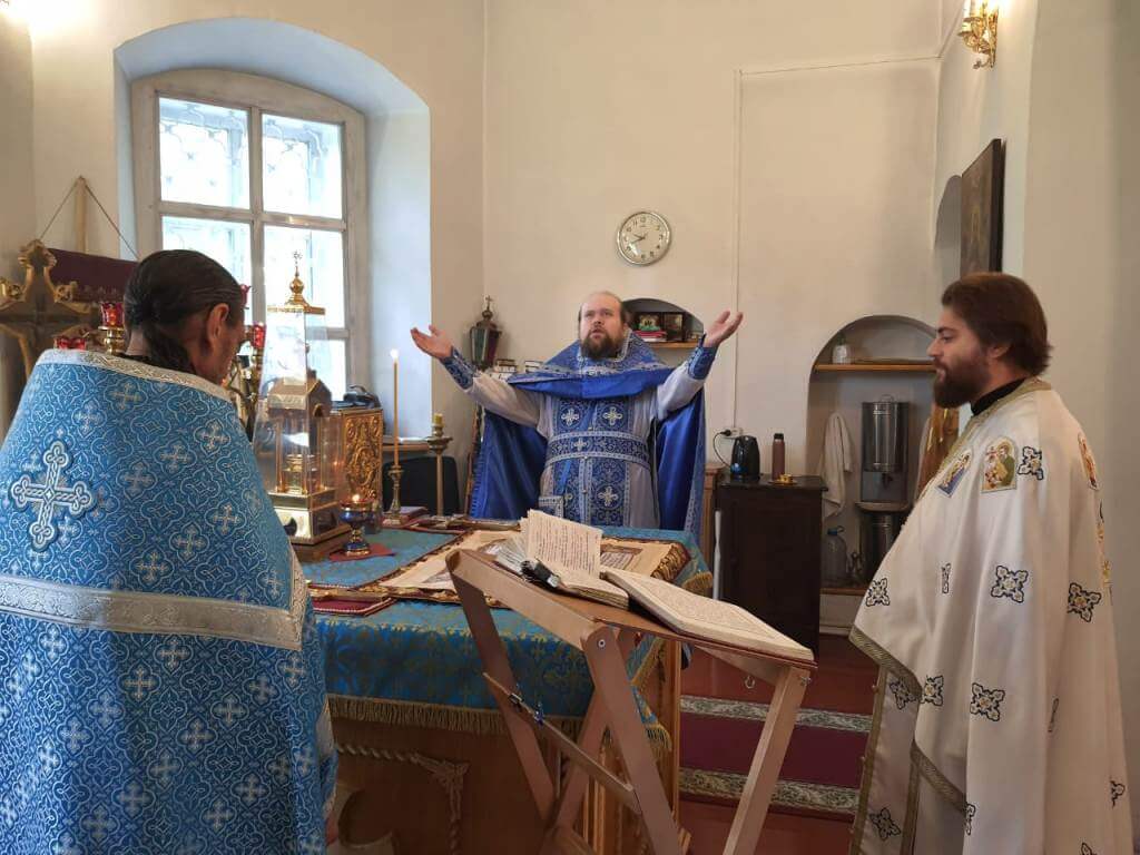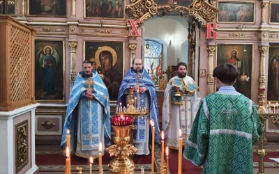 По отпусте Божественной литургии были совершены славление и молитва Божией Матери.