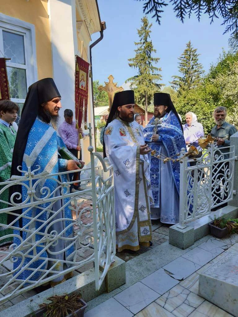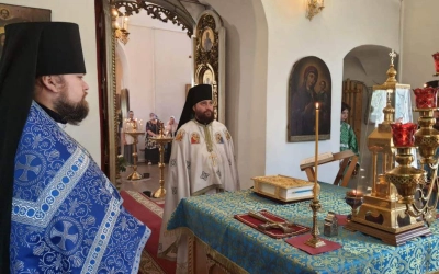Отцу наместнику сослужили: насельник Свято-Владимирского мужского монастыря на истоке реки Днепр иеромонах Иоанн (Рахимов), настоятель храма в честь иконы Божией Матери "Всех скорбящих Радосте" с. Карманова иеромонах Андрей (Дергачёв-Белошецкий).