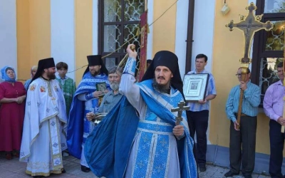 По заамвонной молитве был совершён Крестный ход.