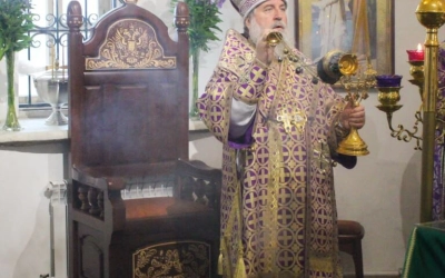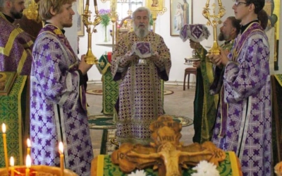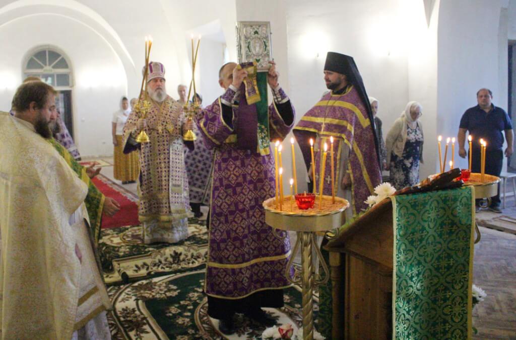 По отпусте Божественной литургии Епископ Сергий обратился к присутствующим с Архипастырским словом на тему праздника Изнесения Честны́х Древ Животворящего Креста Господня.