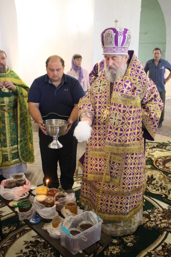 В продолжении богослужения Архипастырь совершил освящение мёда нового сбора.