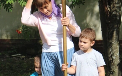 За богослужением молились: старшая сестра женской общины при Аркадиевском монастыре инокиня Агния (Цепко) с сестрами общины, прихожане возрождаемой обители.